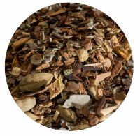 Zutaten: Honeybusch, Zimt-Ingwerstücke, Kurkumascheiben, ganzer Kardamom, Fenchel, Anis, Salbei, gerebelten Thymian, Süßholz, schwazer Pfeffer, keine Aromen