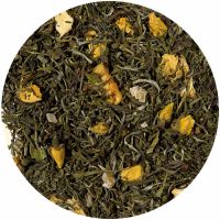 Zutaten: Pai MuTan (9%), Grüner Sencha (81%), Rosenknospen, Mangowürfel, Ananasflocken, Naturaroma von der Birne.